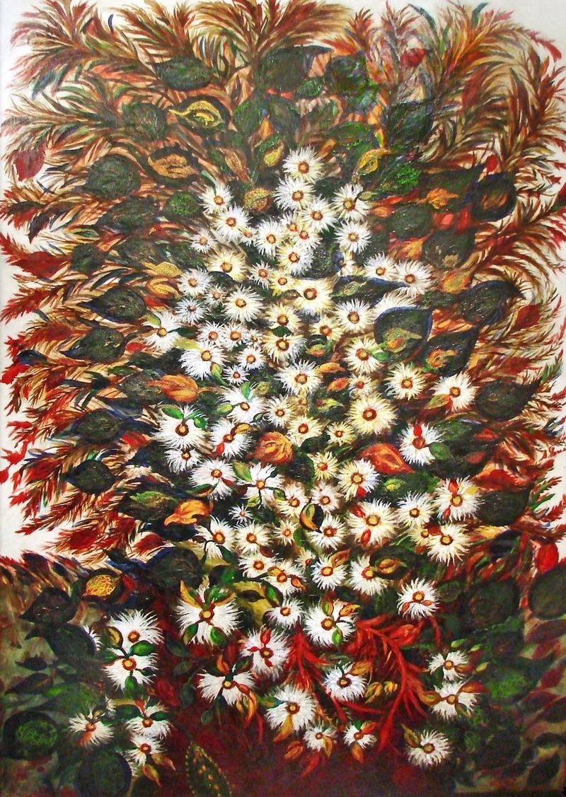 Séraphinede Senlis never received a formal artistic education, she forged an idiosyncratic style outside of the stablished artistic traditions searching for inspiration in religious art as the stained-glass church windows and in her own religious faith. Sometimes the intensity of the colours and replicative design of her works are interpreted as a reflection of her own psyche, between the ecstasy and mental illness.