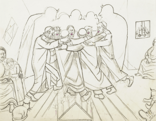 1 thought on “Hasidic Dance during the celebration of Hanukkah by Marevna”