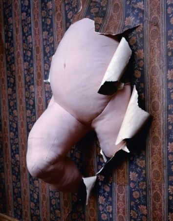 In this room, Tanning brings together five of her sculptures in fabric stuffed with wool: Hôtel du Pavot (two figures in pink), Revelation ou la fin du mois (Figure on a toad armchair), Time and Place (a fireplace teeming with monsters) La Table Tragique as well as her first soft sculpture Pelote d’épingles pouvant servir comme fétiche (1965).