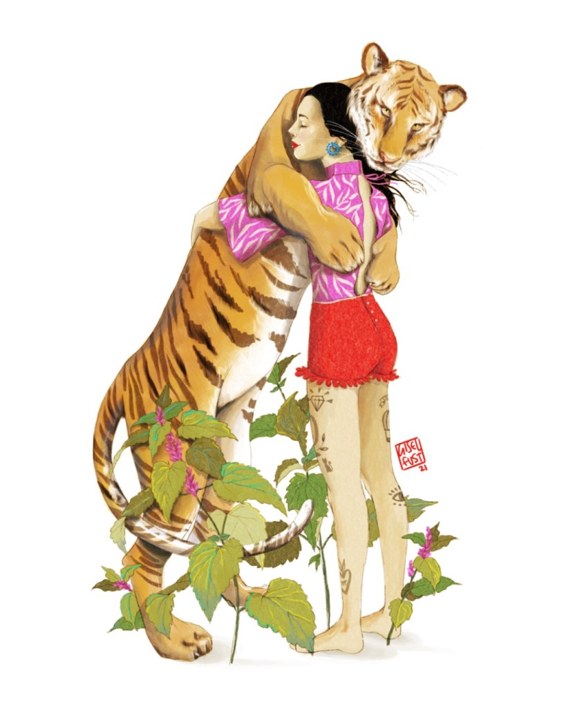 When I was very little, I was in awe of Velázquez, Goya and Caravaggio as classics, or Klimt and Schiele. I guess due to my visits to museums, or the books that were at home. Later, I was curious about female references, and I fell in love with the surrealism of Frida Kahlo and the glamour of Tamara de Lempicka. When I was older and dedicating myself to illustration, I pay much more attention to illustrators, both male and female, that I love, such as David De la Heras, Daniel Torrent, Cinta Vidal, Quentin Greban, Helena Odriozola, Sonia Pulido, Carmen Garcia Huerta among many others.